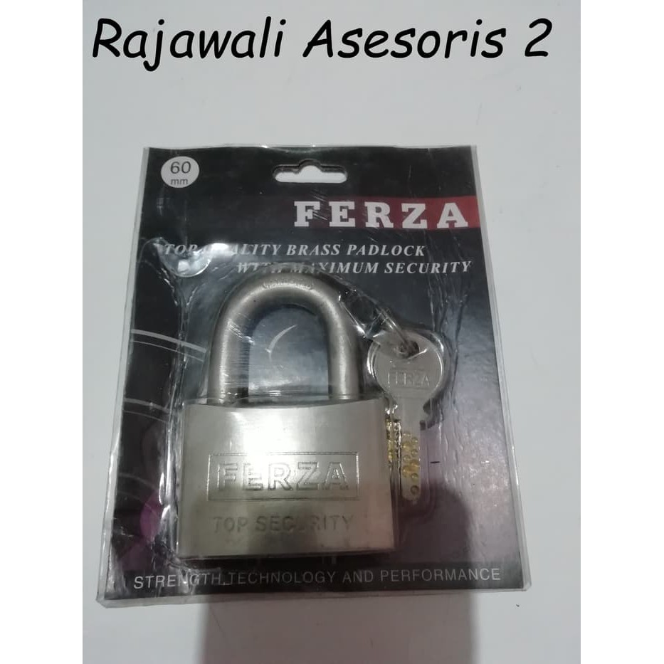 Gembok / Padlock Kuningan 60 mm Ferza Leher PendekMerk : FerzaBahan : KuninganUkuran : 60 mm Leher PendekKelebihannya :- Terbuat dari kuningan sehingga lebih awet jika terkena air.- Kunci nya dapat 4 anak kunci dan merupakan kunci dengan pattern terbaru pin computer sehingga tidak dapat di duplikat.- Ada drain Hole ( lubang air) sehingga jika kena hujan airnya akan keluar dari gembok dan tidak membuat air menggenang di dalam yang membuat nya k