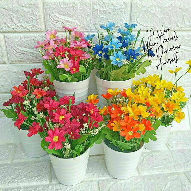 ARIANI1318 SET BUNGA PLASTIK KRISAN C28 DENGAN POT MELAMIN GELAS ULIRharga sudah satu set bunga dan pot Pot berbahan melamin dengan diameter +-10cmBunga berbahan kain dengan 5 varian warna yaitu merah kuning orange fanta dan biruTinggi keseluruhan bunga dan pot kurang lebih 22cmFoto produk kami foto sendiri dijamin keaslia