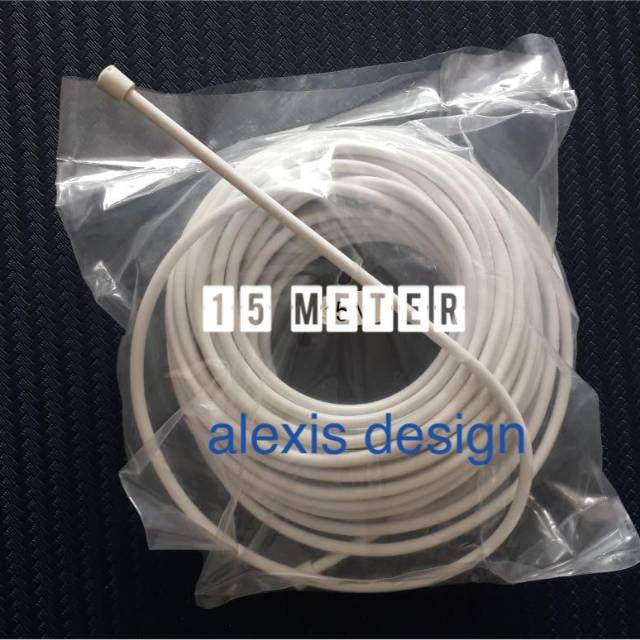 Kabel spiral untuk memasang model vitrage atau minimalis atau model kupuTerbuat dari kawat baja yg mempunyai kelenturan hingga dapat sedikit ditarik seperti per dan dilapisi pembungkus plastik menyerupai kabelHarga untuk 15 meter kabel spiral