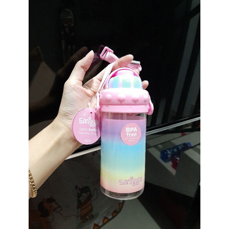 Terbaru nih.. Botol minum SMIGGLEIni ada talinya y.. jd gampang bawanyaIsi 430ml.cocok utk kado j